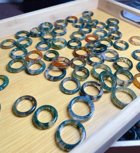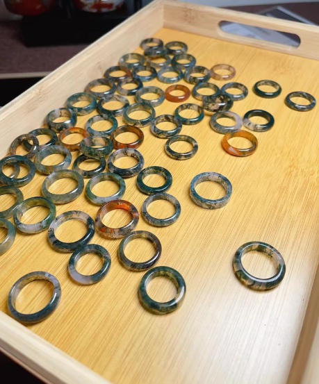 阜新水草玛瑙自带特色, 每枚戒指上的水草纹路都是天然形成的,有的像灵动的枝叶,有的像朦胧的云雾,没有完全一样的两枚,戴在手上特别显个性。