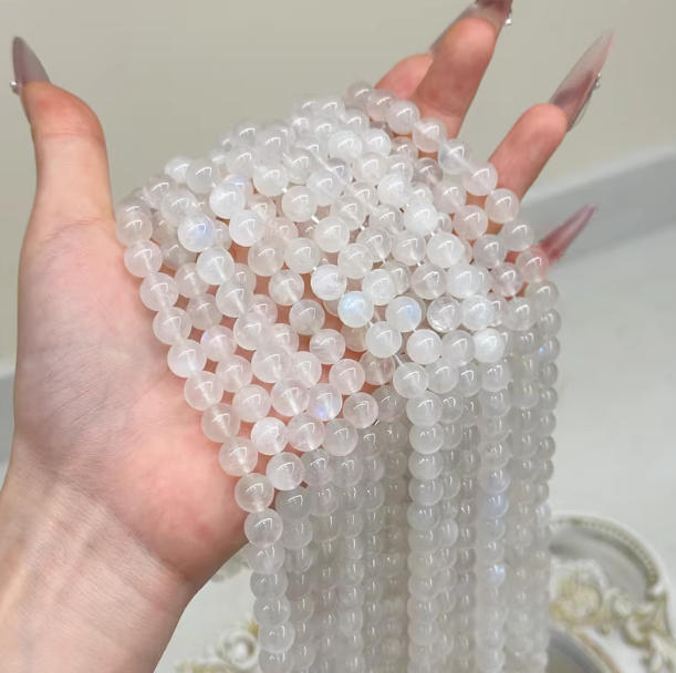 自家工厂直销可塘天然蓝月光圆珠长条散珠,支持 DIY 设计,4-8.8mm 多尺寸可选,适合珠宝店进货、手工爱好者创作!