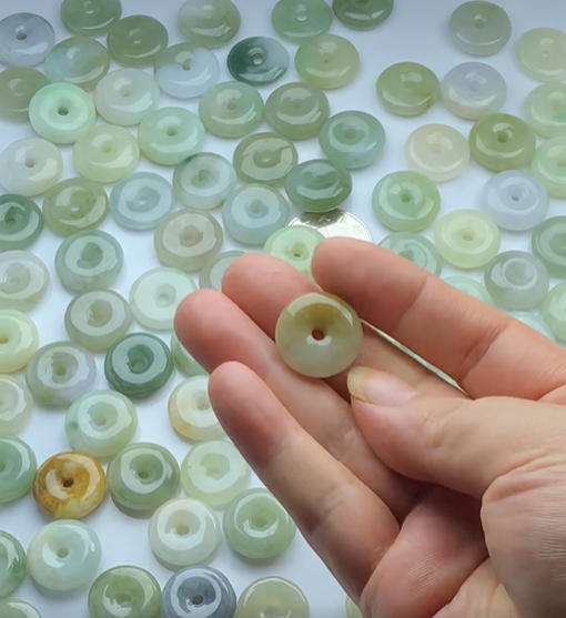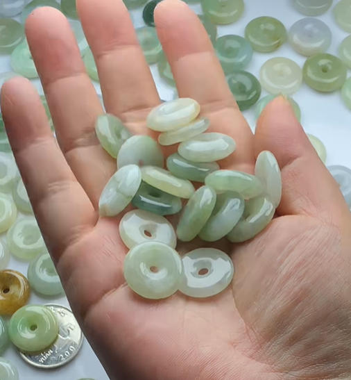 天然A货翡翠冰润带色扣子,现以100个为单位批量清货,适合饰品店补货、手工创作批量备货或翡翠小件贸易采购。