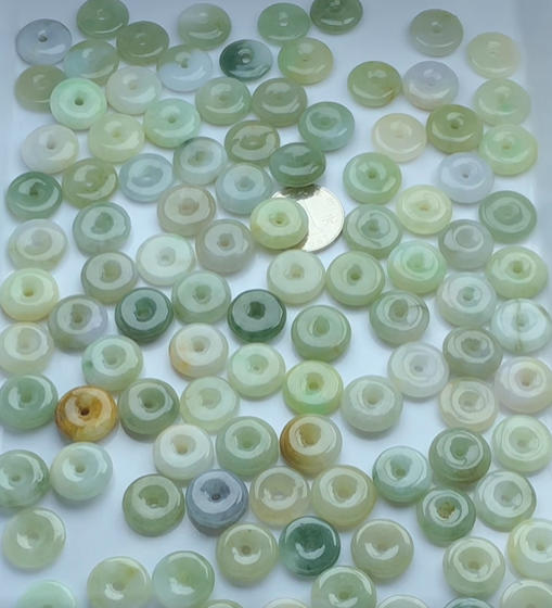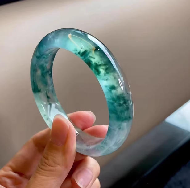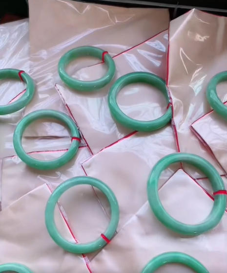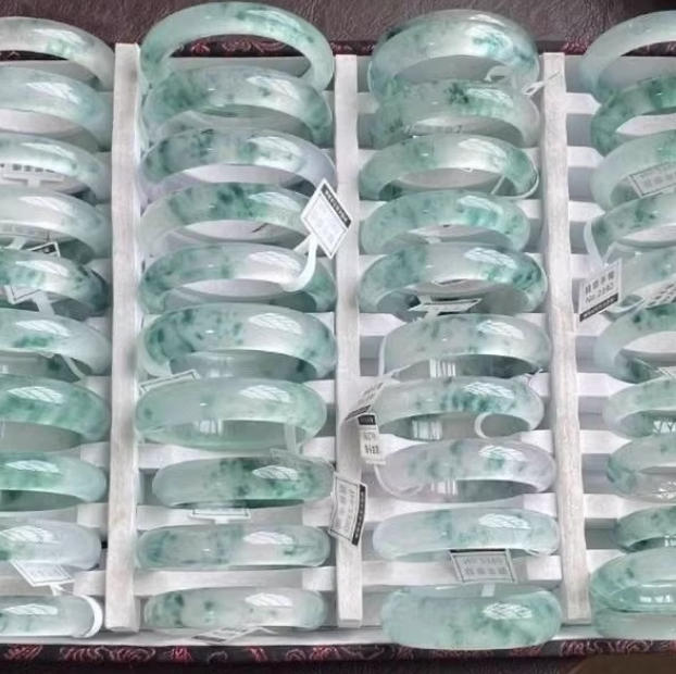 这批手镯在品质上尤为亮眼:玉质属于优质石英岩玉,底子细腻通透,无粗糙颗粒感,对着光看能感受到水润的光泽;表面经过精细打磨,光滑平整无毛刺,上手佩戴贴合手腕,触感舒适;冰种质地搭配自然飘花,纹路灵动不杂乱,每一款都有独特的纹理分布,视觉上清新雅致,自带高级感。更难得的是,手镯经过严格筛选,做到没纹没裂,完美度高,种水表现一流,原相机拍摄下的样子与实物几乎无差,拿到手会发现实物比图片更显质感。