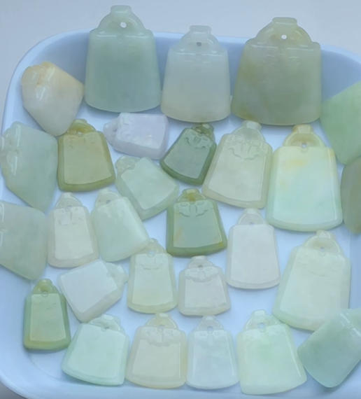清货天然A货翡翠冰带色复古雕刻厚装无事牌,共计28件,可作为挂件、吊坠等饰品原料或成品批量采购。...