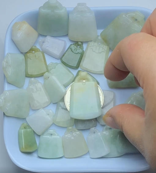 清货天然A货翡翠冰带色复古雕刻厚装无事牌,共计28件,可作为挂件、吊坠等饰品原料或成品批量采购。
